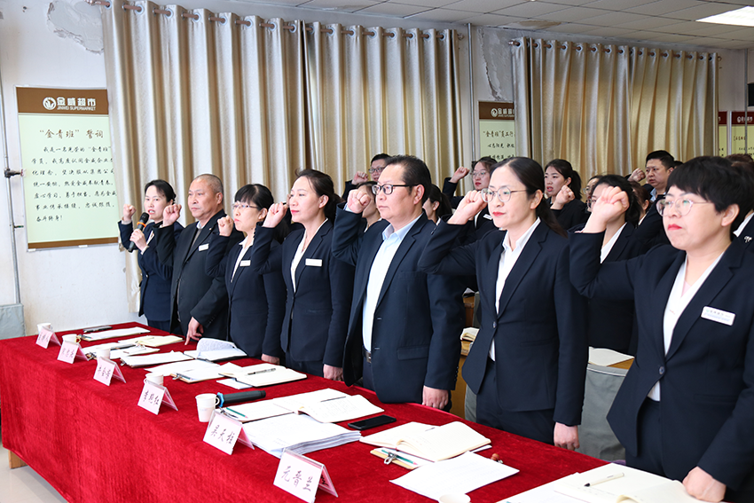 金威超市襄垣店總經(jīng)理吳天柱帶領(lǐng)全體管理人員宣誓