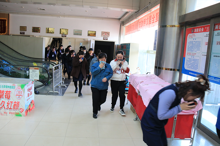 早上8點(diǎn),正當各部門(mén)進(jìn)行晨會(huì )之際,賣(mài)場(chǎng)內突然響起消防廣播。在各部門(mén)經(jīng)理的迅速指揮下,全體員工響應動(dòng)作嫻熟,遵循“就近原則”,以最快的速度從安全通道疏散至門(mén)前廣場(chǎng)。部門(mén)經(jīng)理緊張而有序地清點(diǎn)人數,確保所有員工安全撤離。隨后,防損部經(jīng)理牛小軍對本次應急疏散演練中發(fā)現的問(wèn)題進(jìn)行了深入點(diǎn)評。接著(zhù),牛經(jīng)理詳細演示了滅火器和自救呼吸器的使用方法。他從器材的性能、使用技巧、注意事項以及自救有效時(shí)間等多方面向在場(chǎng)員工進(jìn)行了全面細致的講解。