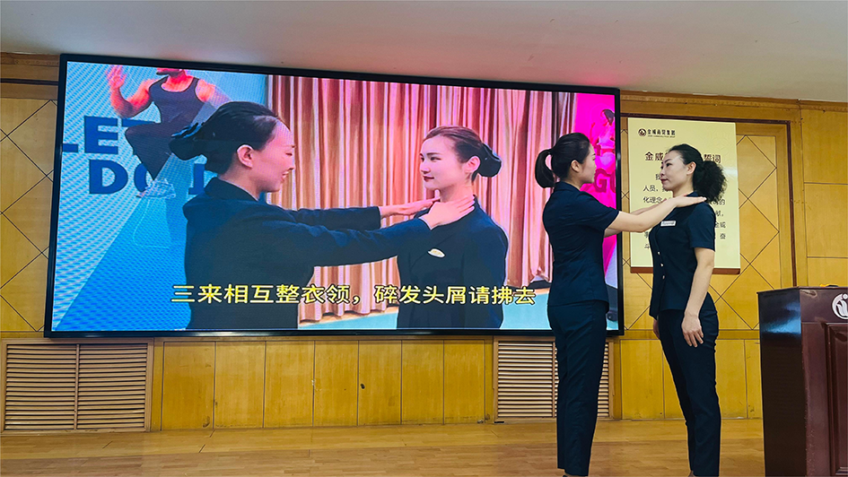 此次全員培訓,平總為給年輕管理人員提供更多的鍛煉機會(huì ),特別安排他們兩兩一組搭檔授課。裴娜和程亞南以專(zhuān)廳陳列的基本原則、方法和技巧為切入點(diǎn),讓員工學(xué)會(huì )如何根據不同因素進(jìn)行專(zhuān)廳點(diǎn)綴與陳列,達到吸睛引客效果。申靜和王玲艷就儀容儀表規范及服務(wù)禮儀進(jìn)行了最好的示范與要求,從細節入手,引導大家堅持初心做好服務(wù),始終樹(shù)立良好的對外形象。李波和彭彥波結合日常工作,從消防器材及用電設備的操作要點(diǎn)、注意事項進(jìn)行了詳細講解,增強了全員對安全工作的關(guān)注度和防范意識。楊旭亮和牛亞琴,融合當下流行趨勢,現場(chǎng)進(jìn)行穿搭講解及演示,有效鏈接員工日常銷(xiāo)售,為提升大單連單提供了借鑒與啟發(fā)。晉輝與張俊平,二人用心揣摩,針對不同顧客類(lèi)型進(jìn)行分類(lèi)講解,使大家豁然開(kāi)朗,并可在工作中進(jìn)行“復制粘貼”,靈活套用。王卉與張姍姍,結合各自工作特點(diǎn)講解了鞋品選購技巧及高科技面料常識,實(shí)用與操作并舉。人事部副經(jīng)理李寧為管理人員講解了常用辦公軟件的基本功能、操作技巧以及簡(jiǎn)要的行文規范,為切實(shí)落實(shí)提升管理效能,提高管理人員電子辦公能力奠定了基礎。財務(wù)部副經(jīng)理韓朝霞就收銀基礎知識進(jìn)行專(zhuān)題培訓,極大豐富了收銀人員的知識儲備,同時(shí)加強了風(fēng)險防范的意識。